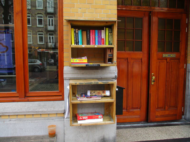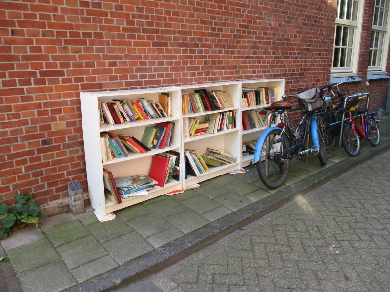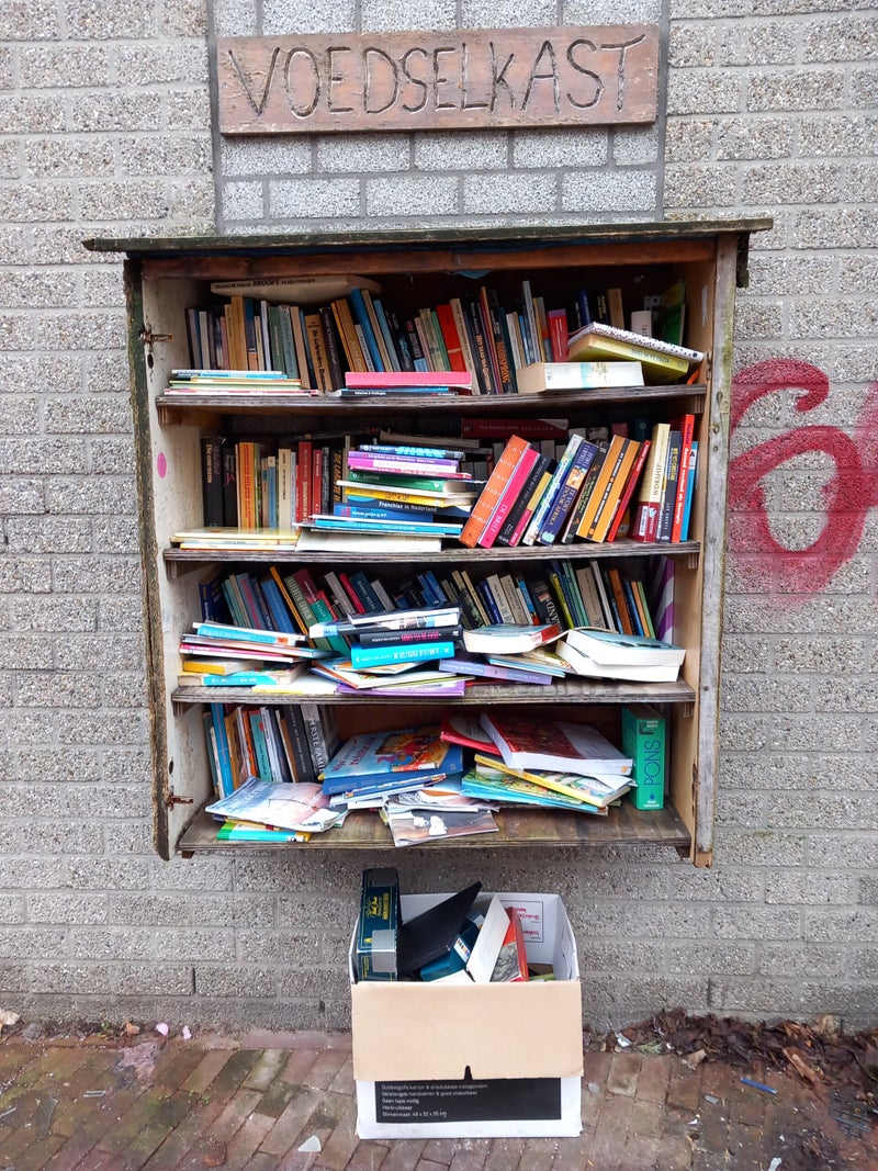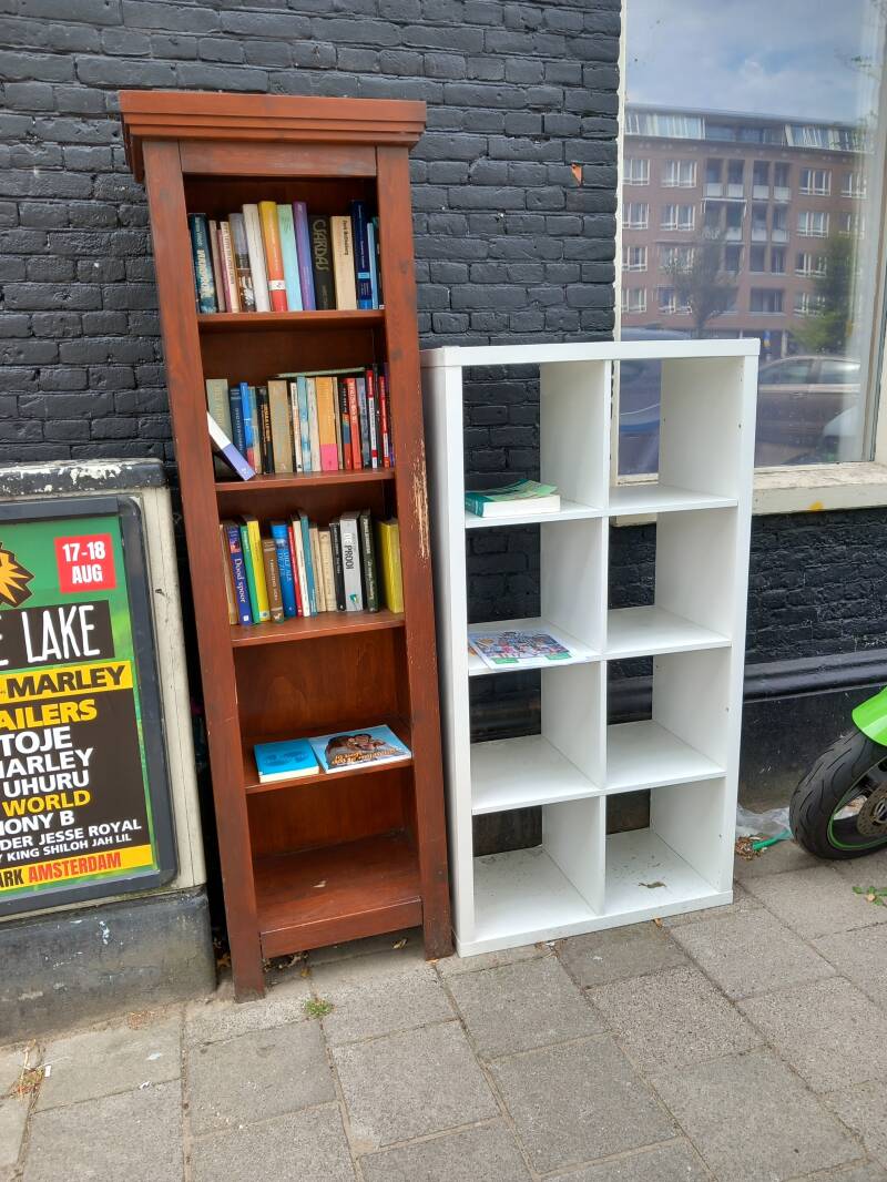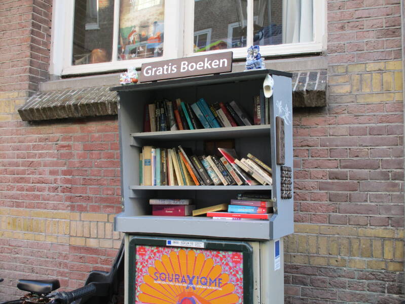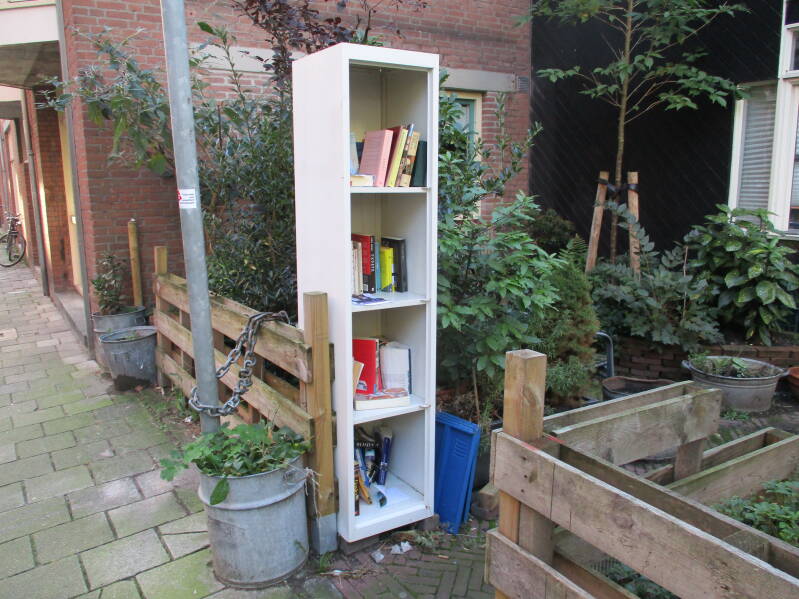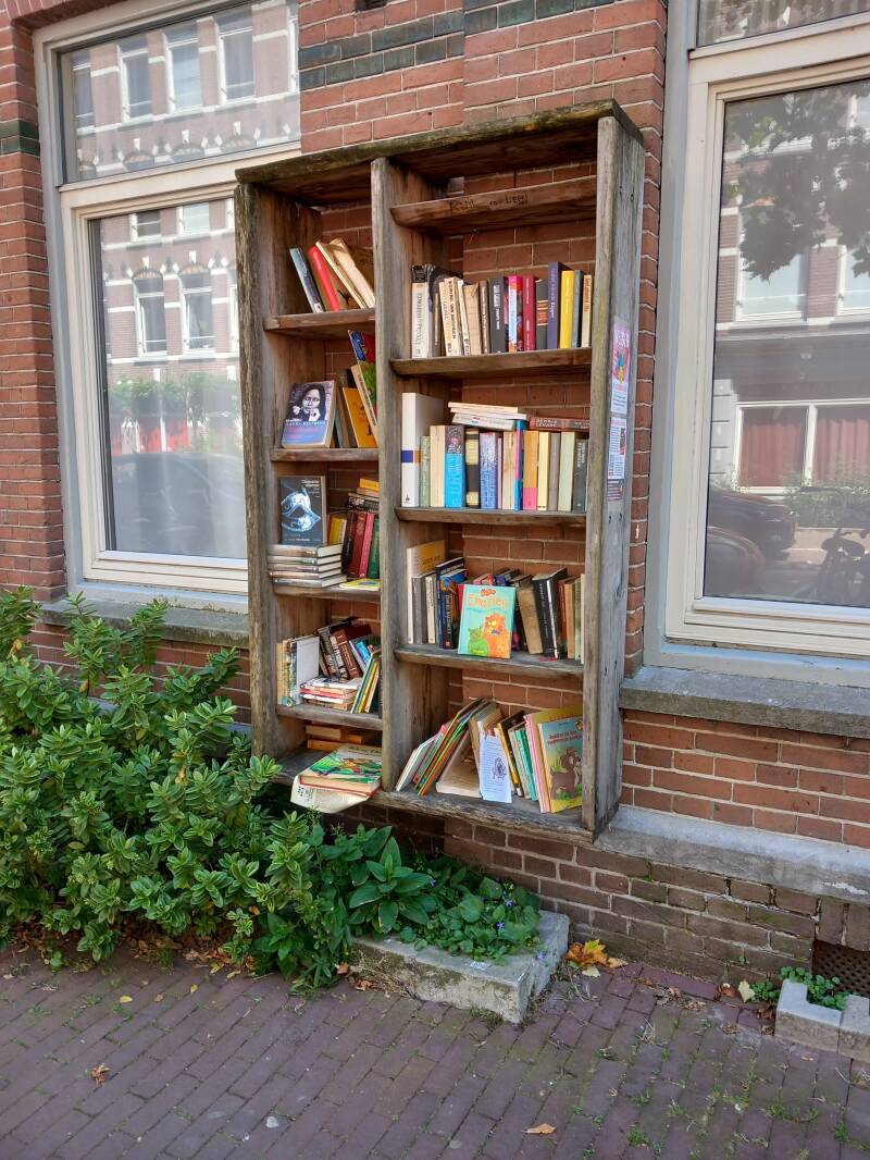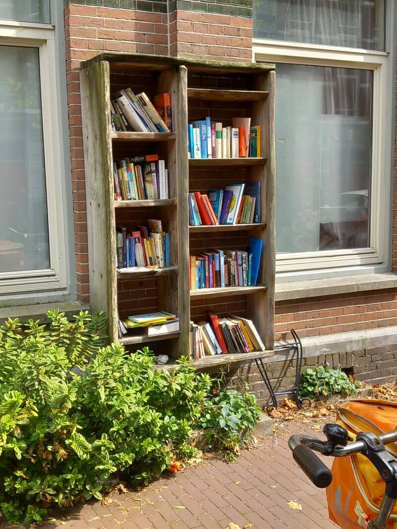 In Amsterdam staan veel boekenkastjes op straat waar men gratis een boek uit kan halen of bij kan zetten.