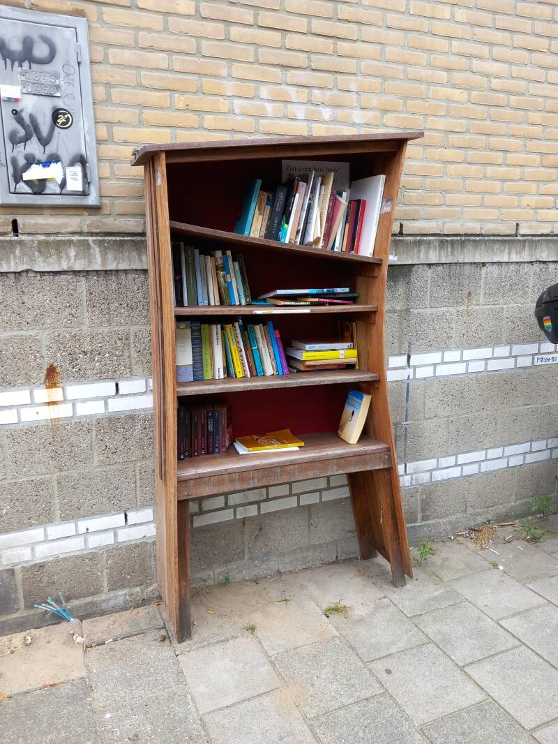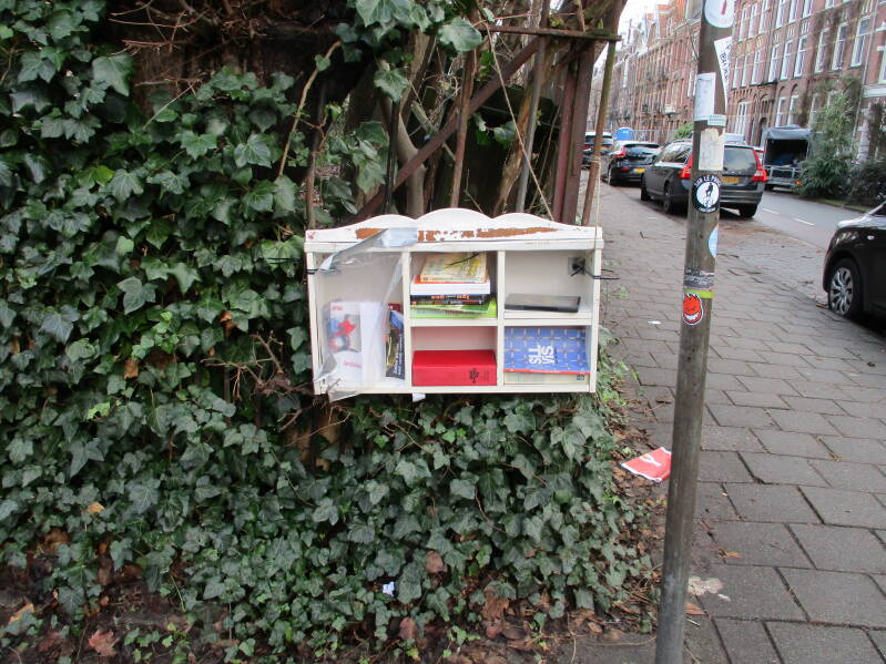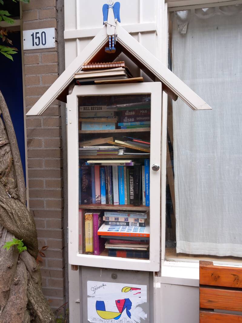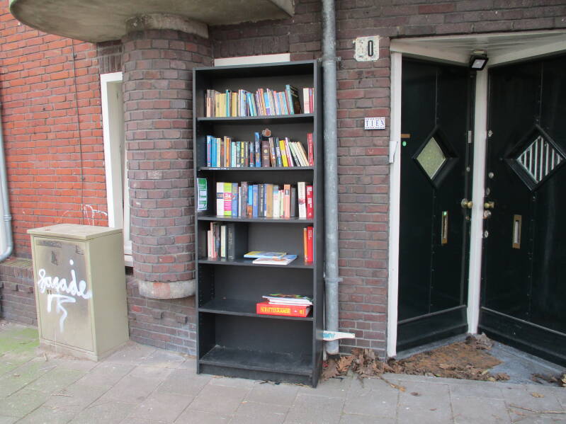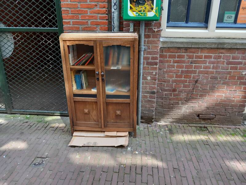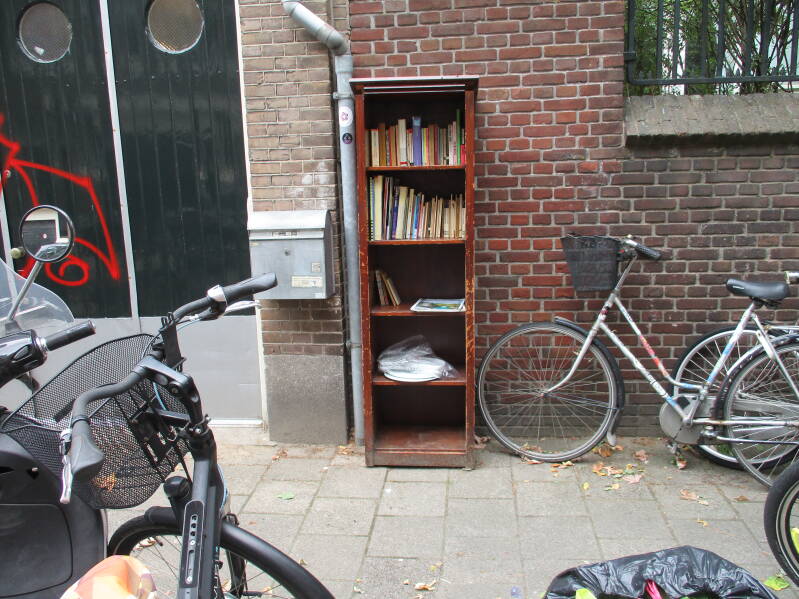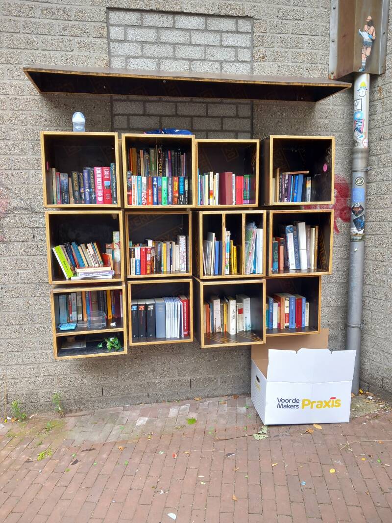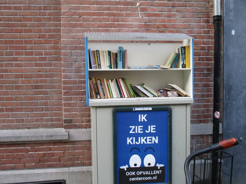 In Amsterdam staan veel boekenkastjes op straat waar men gratis een boek uit kan halen of bij kan zetten.
