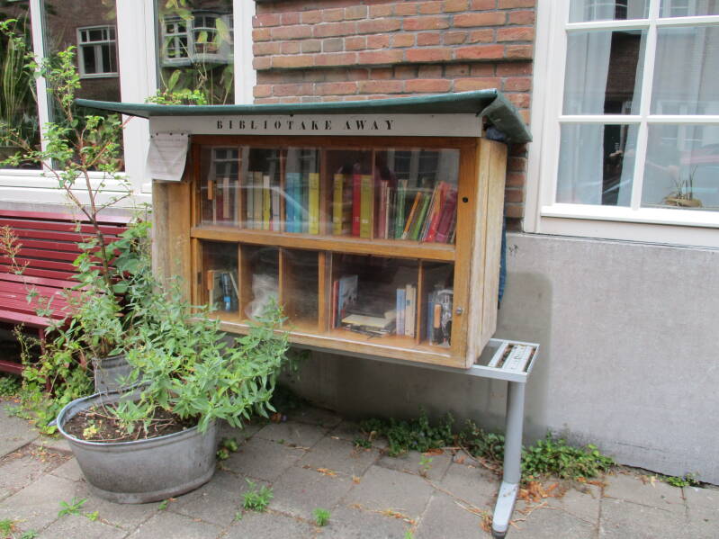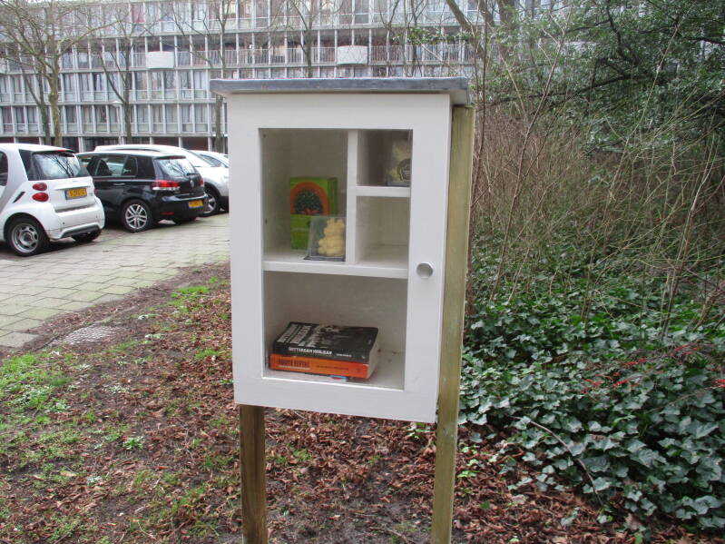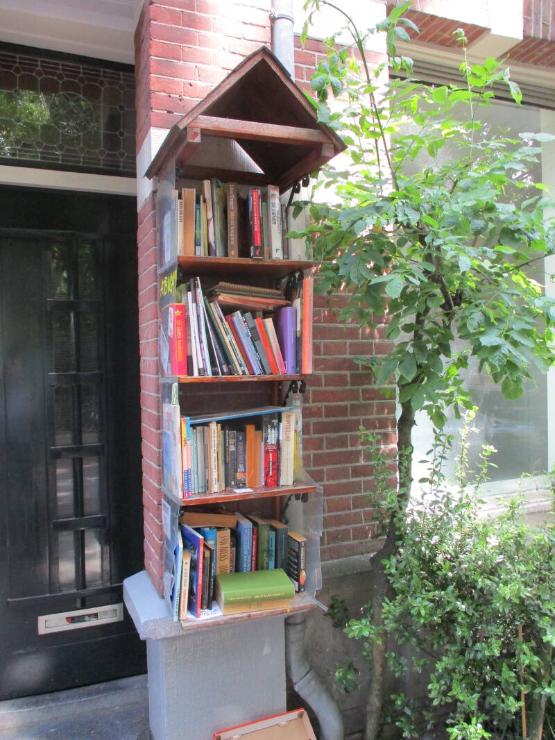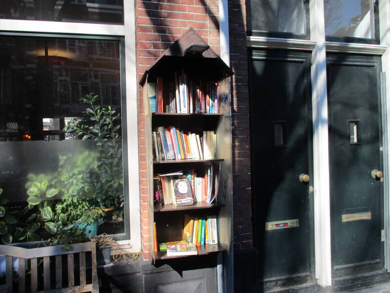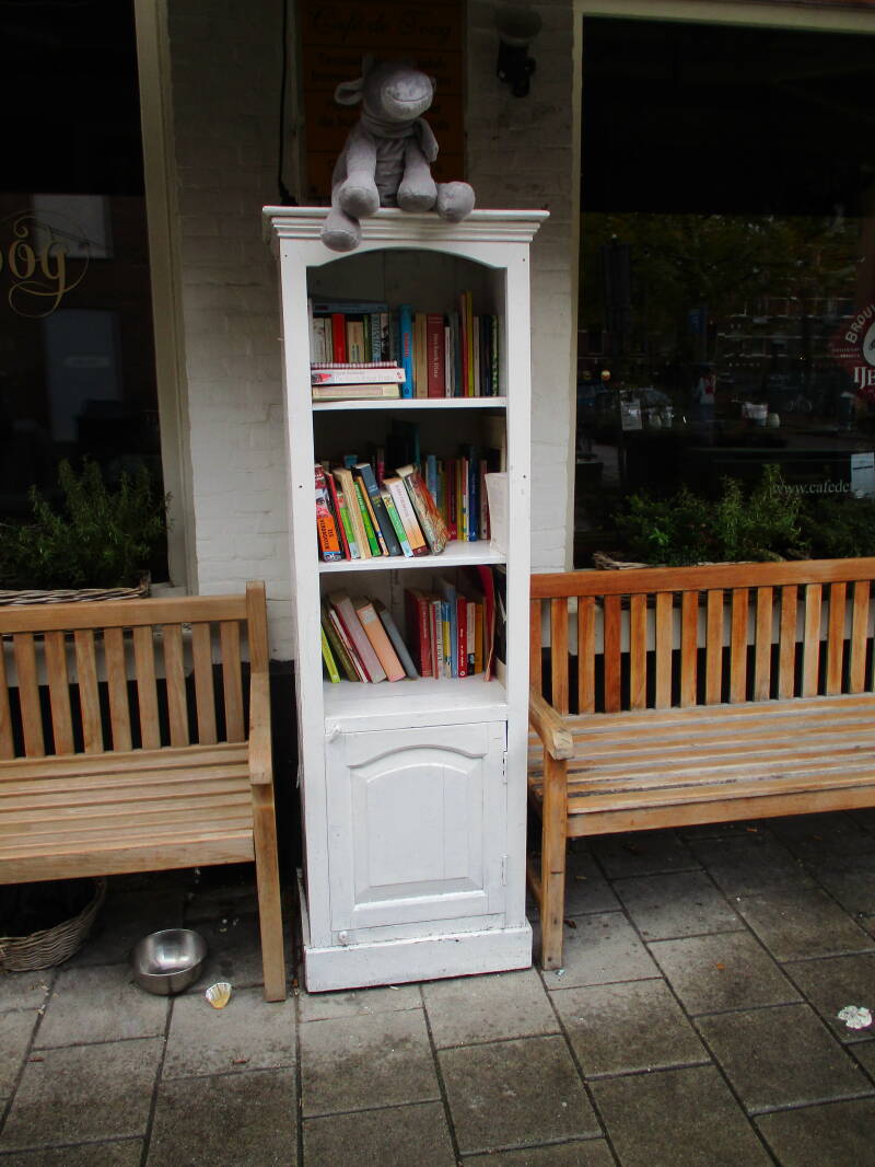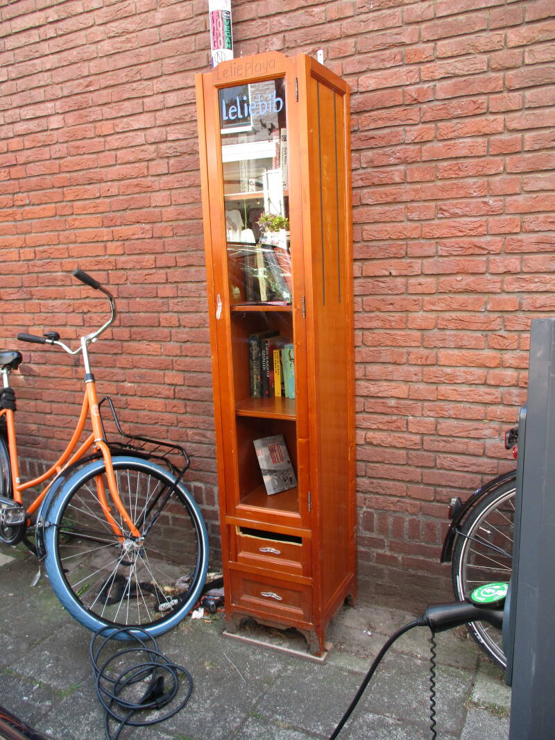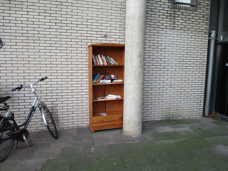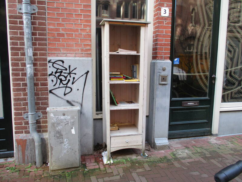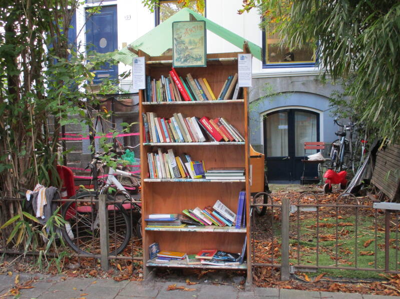 In Amsterdam staan veel boekenkastjes op straat waar men gratis een boek uit kan halen of bij kan zetten.