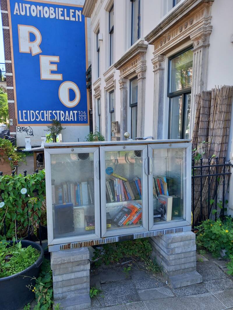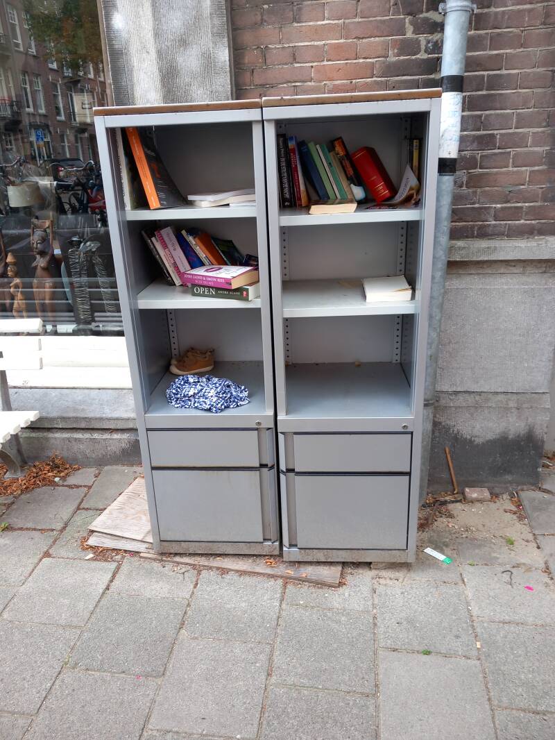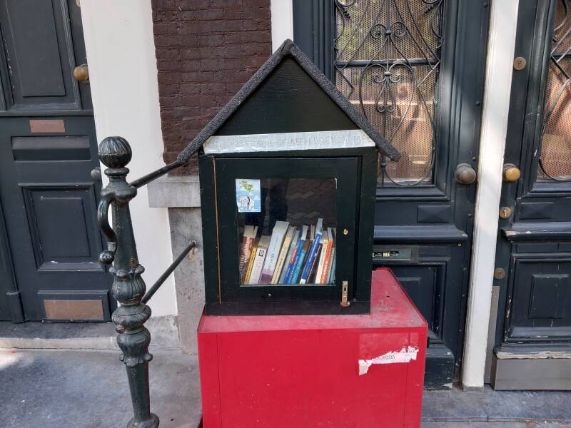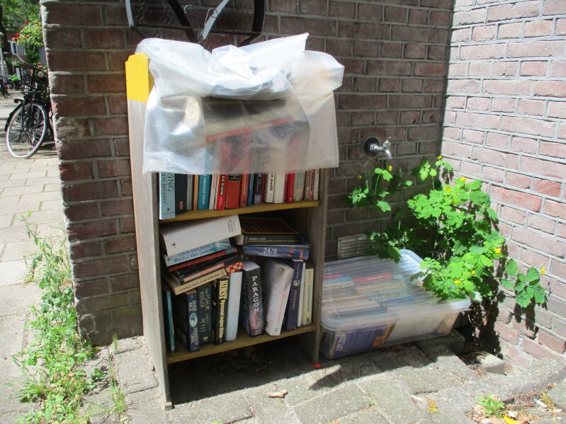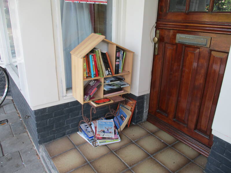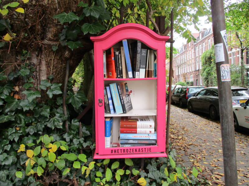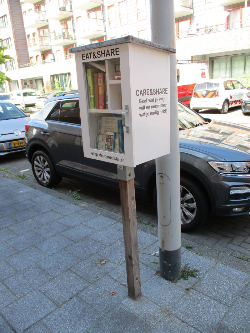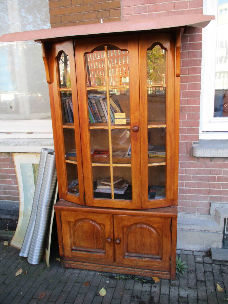 In Amsterdam staan veel boekenkastjes op straat waar men gratis een boek uit kan halen of bij kan zetten.