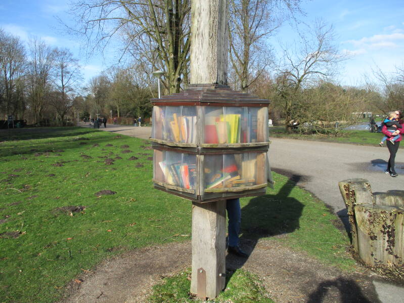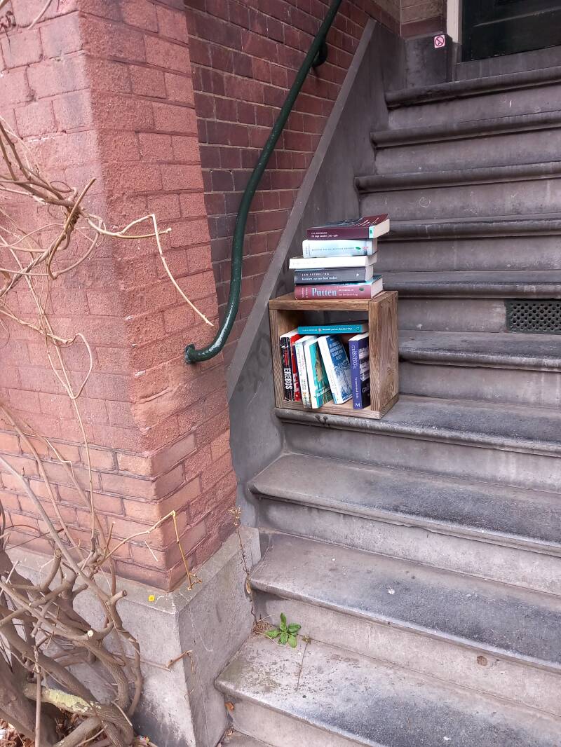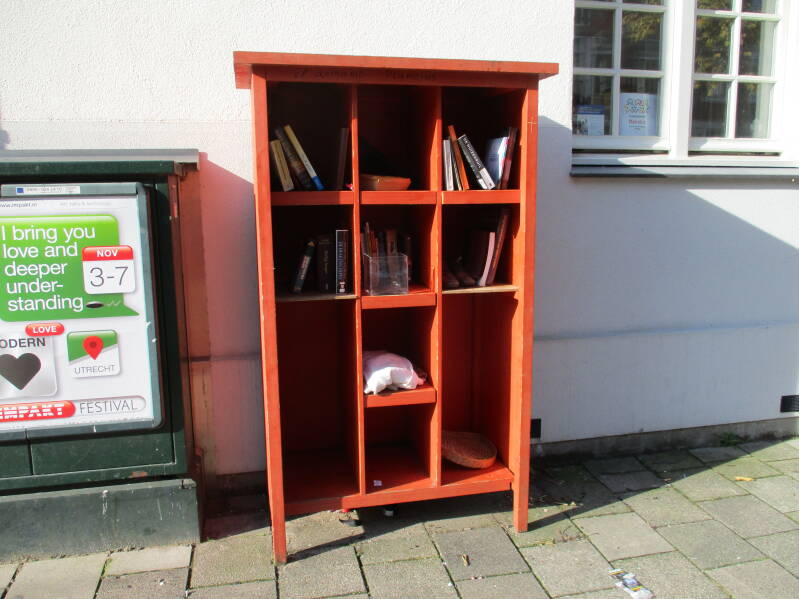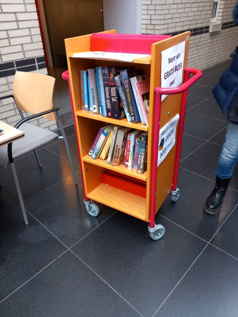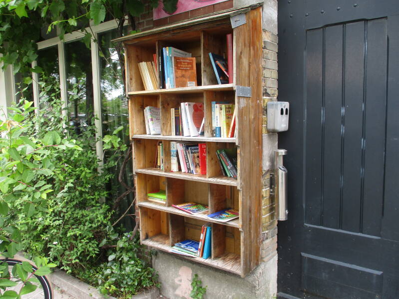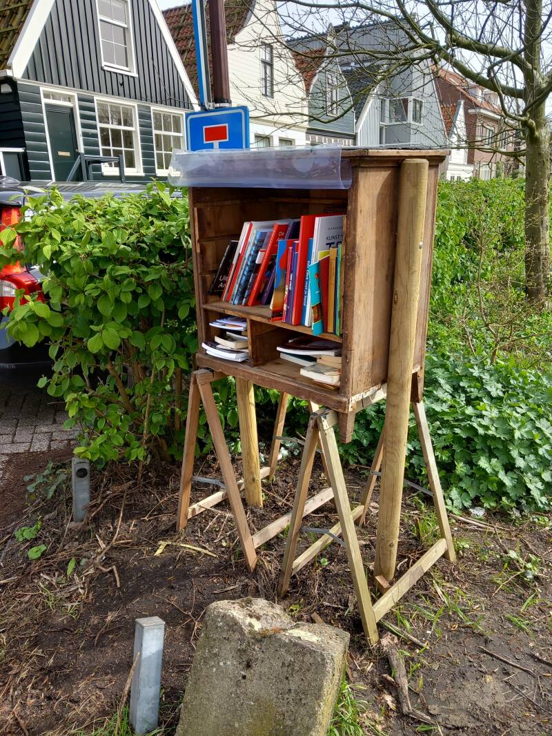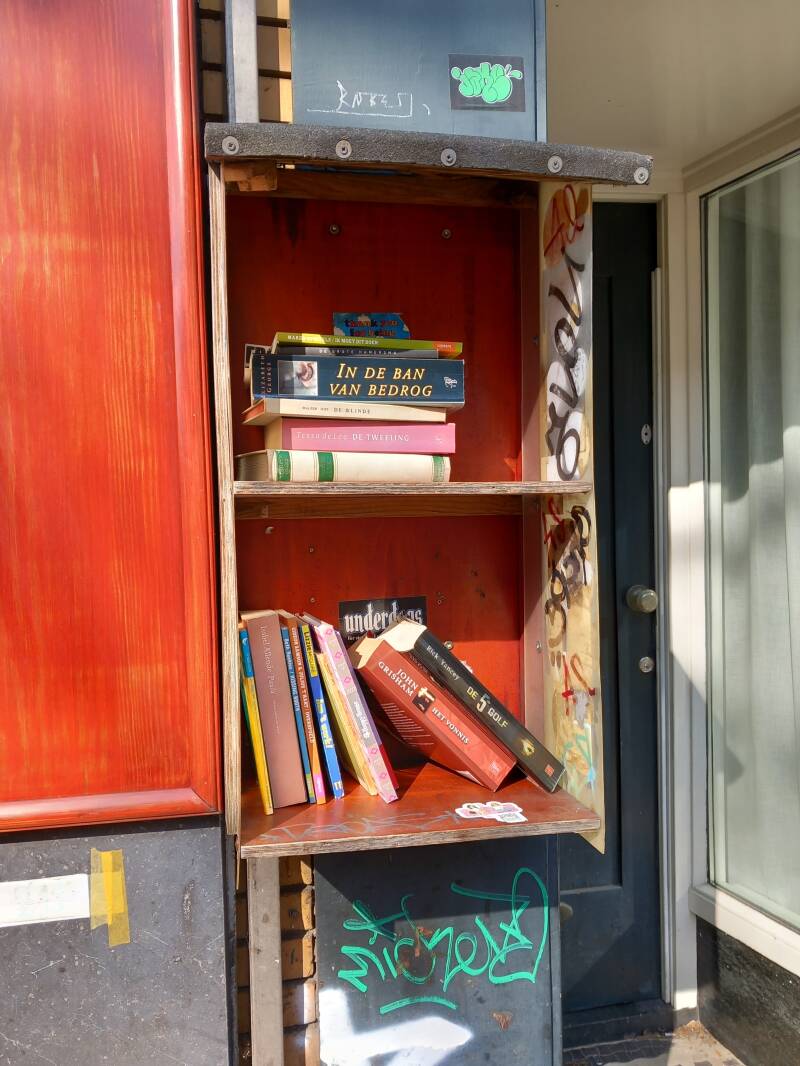 In Amsterdam staan veel boekenkastjes op straat waar men gratis een boek uit kan halen of bij kan zetten.