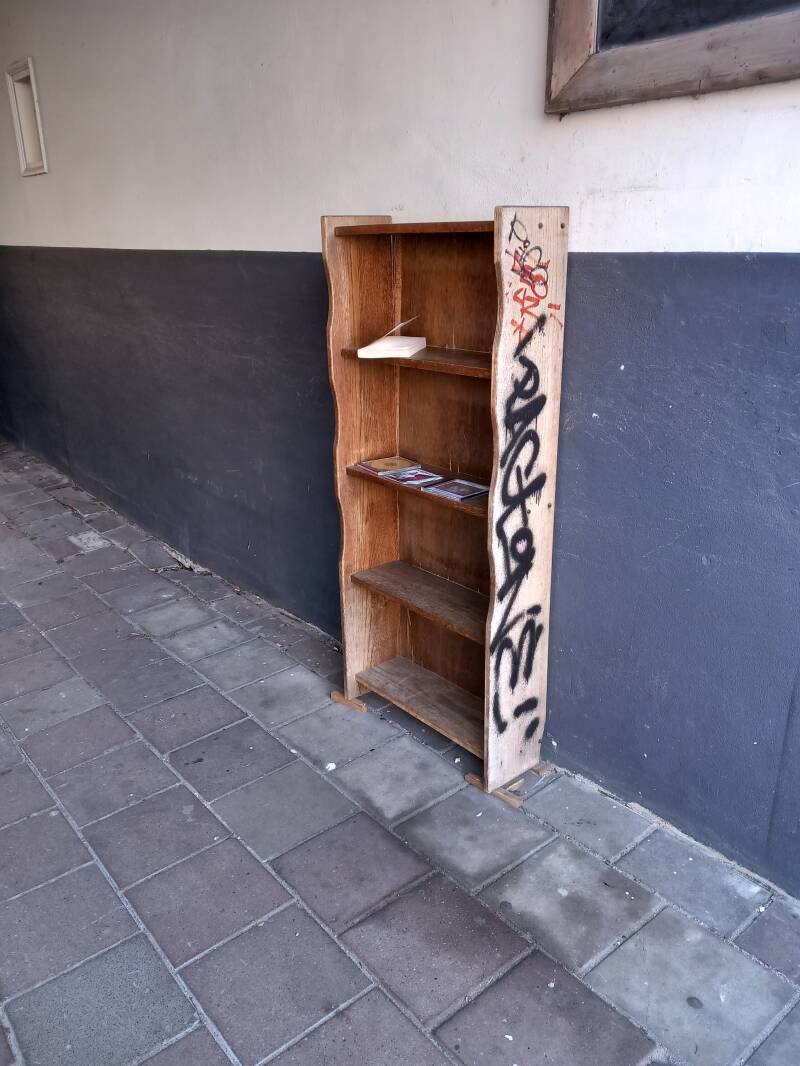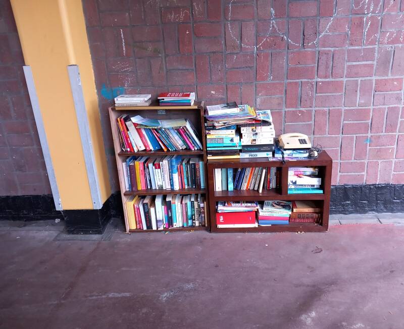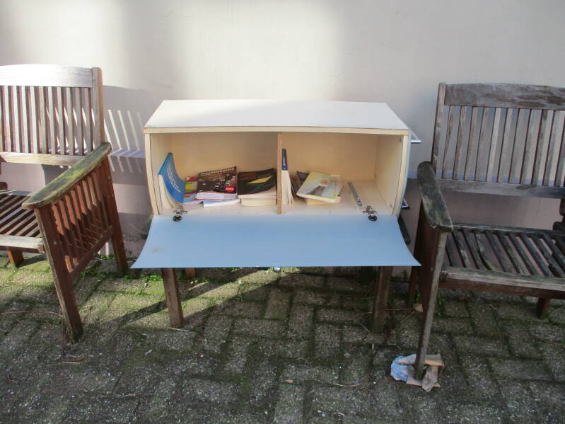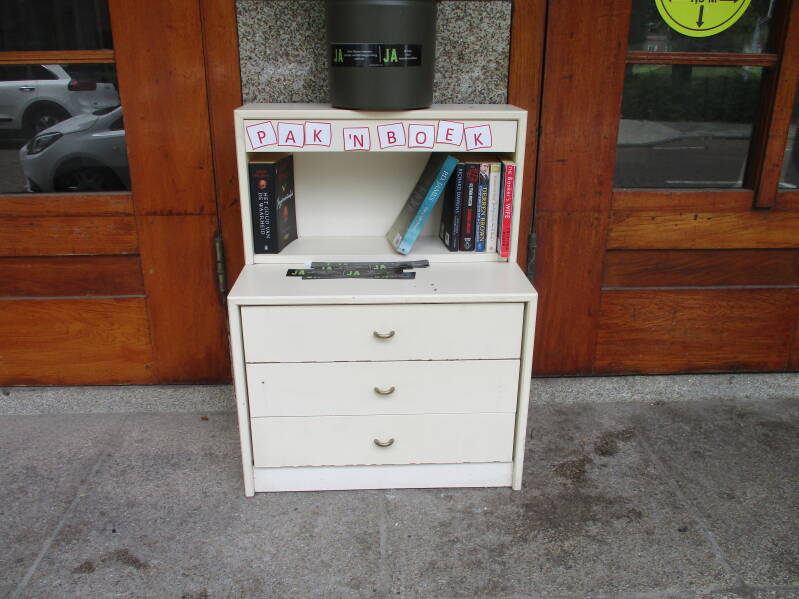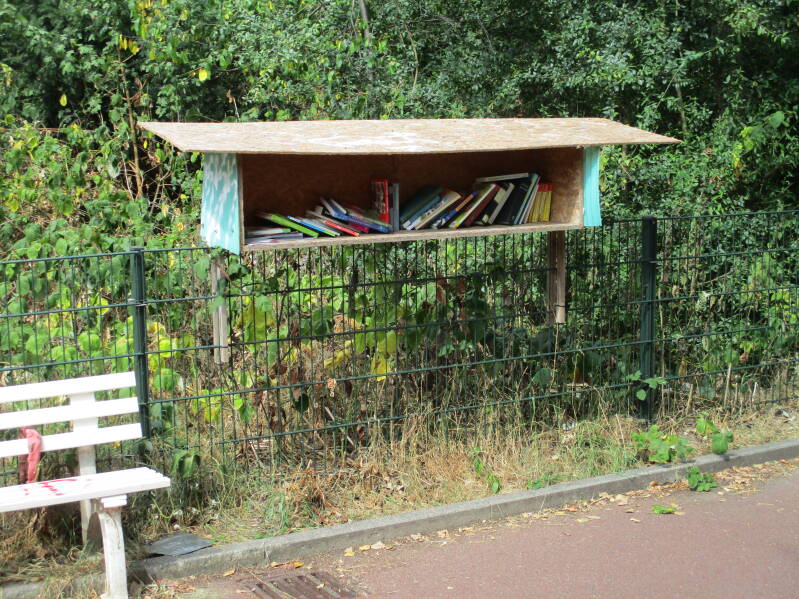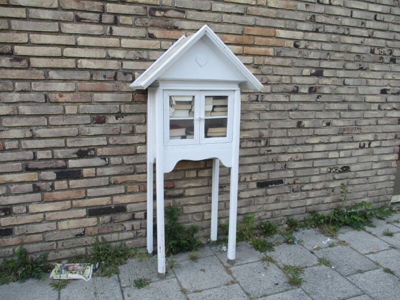 Er staan diverse soorten boekenkastjes, van mooi tot lelijk, hier een kleine greep.
