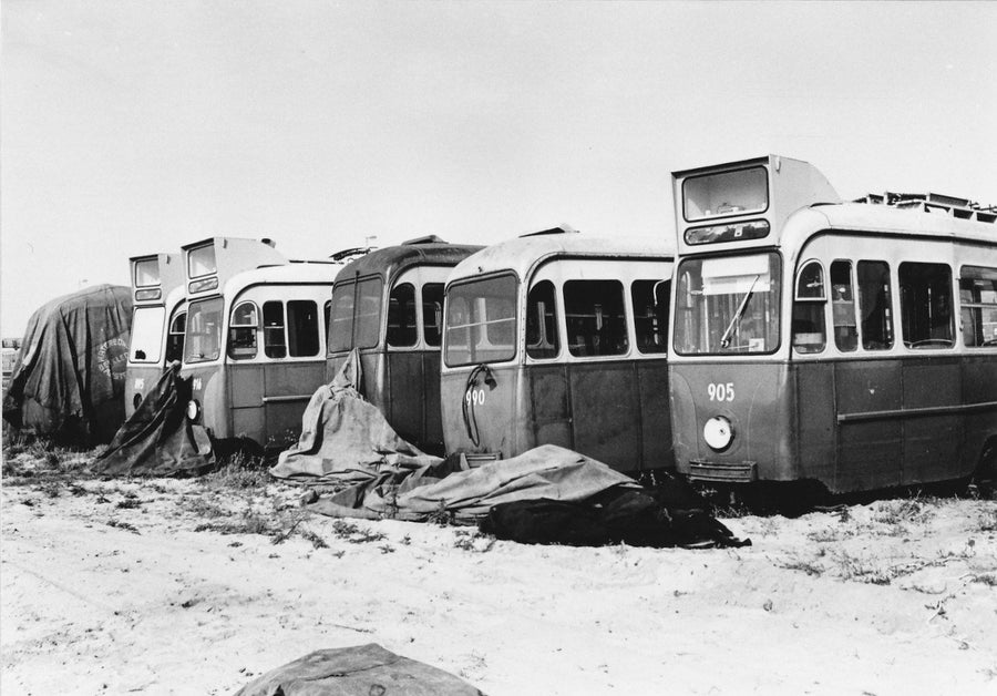 In de jaren zeventig werd een deel van de drie-assers afgevoerd. Ze werden opgeslagen op een terrein naast de Metro werkplaats in Diemen. Het betrof de m.w:894,895,899,904,905,916,921,925 en 941 en de b.w: 934,935,951,961,962,970,983,988,989 en 991. Voor de buitenwereld zag dat er niet netjes uit en gingen de drie-assers naar een loods van de firma Icova aan de Meeuwenlaan in Amsterdam Noord. Het overbrengen gebeurde per dieplader van de firma Saan uit Diemen. Zo kon men in 1979 geregeld een drie-asser op de pont zien. Vanuit Amsterdam Noord zijn de wagens tenslotte terecht gekomen bij een sloperij in Badhoevedorp.