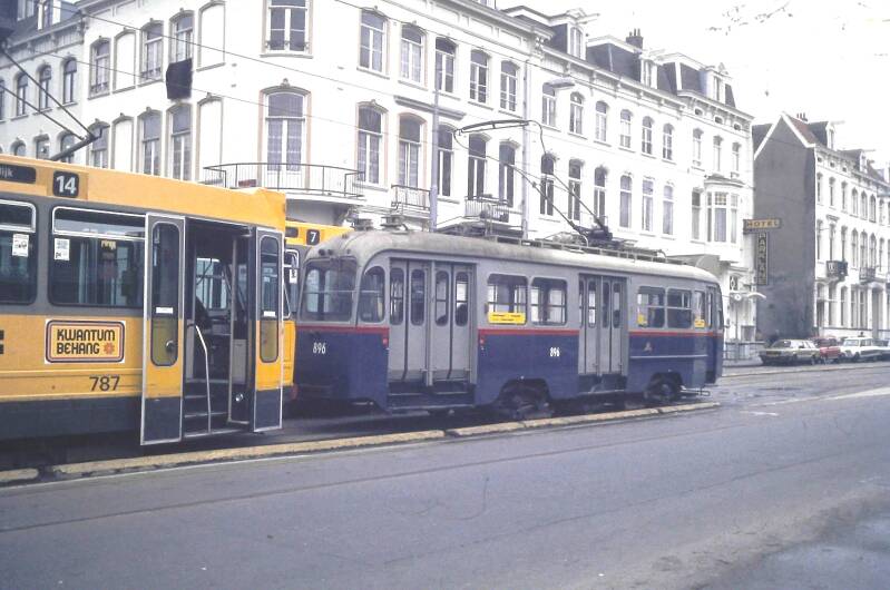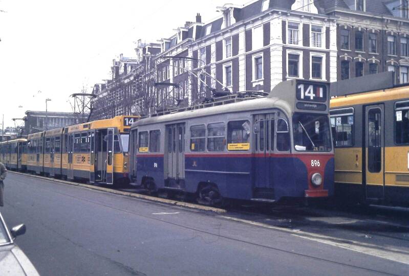 Plantage Parklaan, 18-3-1983. In verband met personeelsgebrek een losse motorwagen op lijn 14, de 896