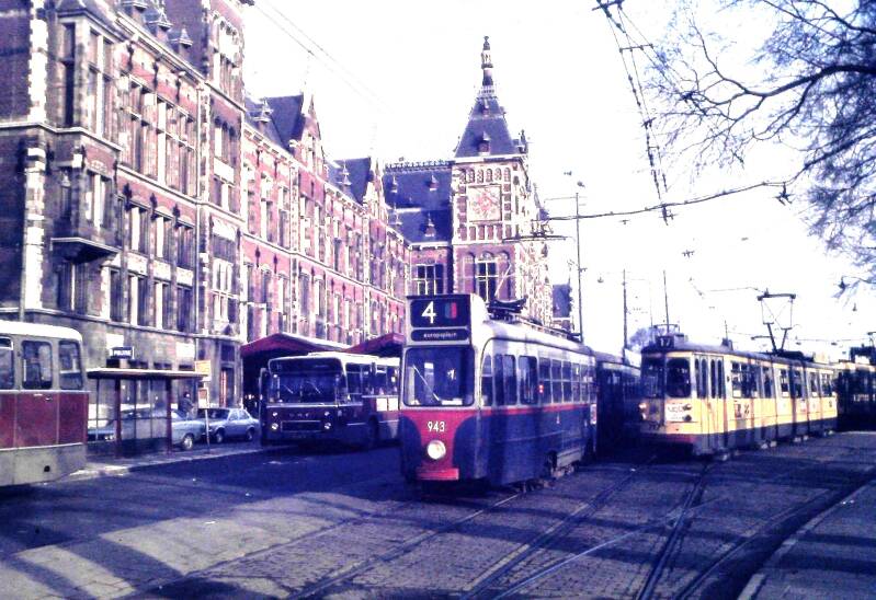 Lijn 4 - 943+977. Stationsplein, 15-3-1978