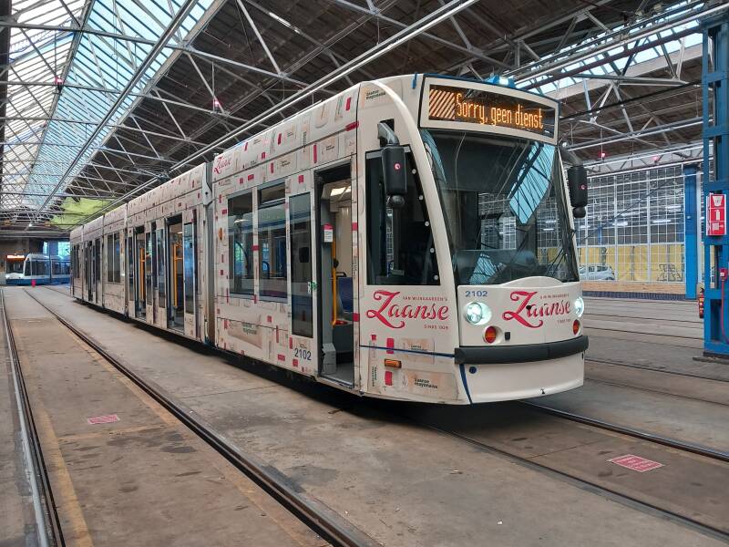 Lijn 12 - 2102. Remise Lekstraat, 25-6-2024. Tijdelijk eindpunt i.v.m. vernieuwen Berlagebrug