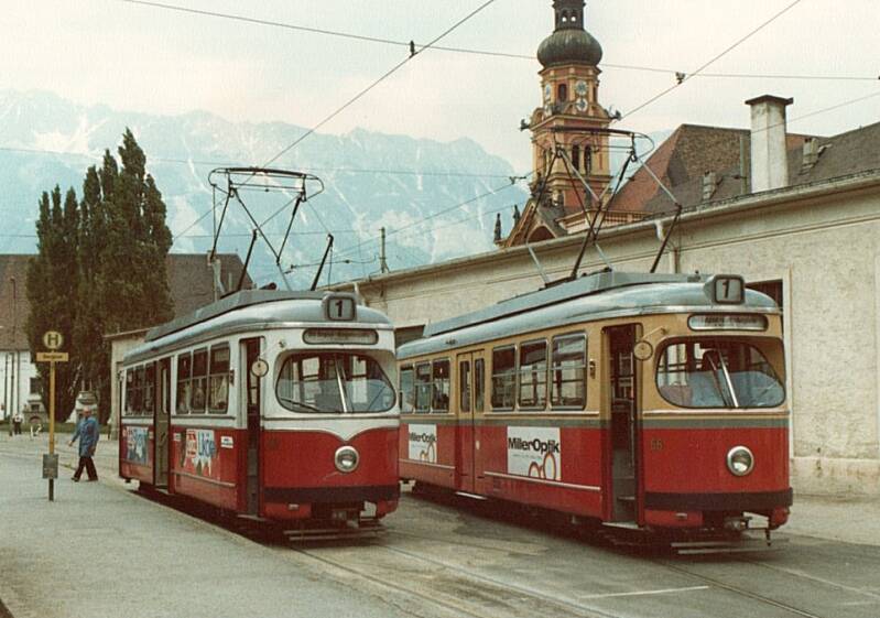 Berg Isel Bahnhof, 14-8-1978. Lijn 6 - T.w. 2 en lijn 1 - 87, ex Hagen 67