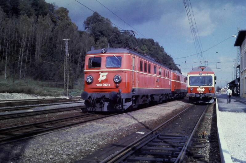 Lambach, 3-10-1989. OBB 1010 012-1 en Stern & Hafferl ET 25104