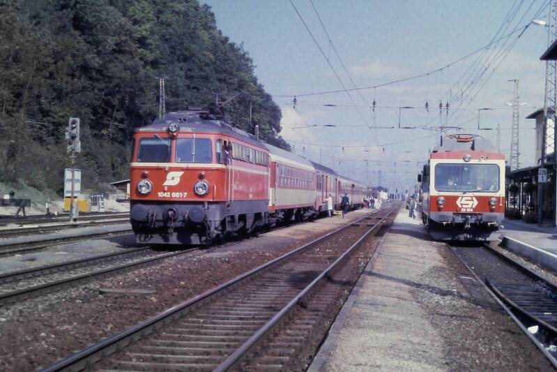 Lambach, 3-10-1989. OBB 1042 661-9 en Stern & Hafferl ET 25104